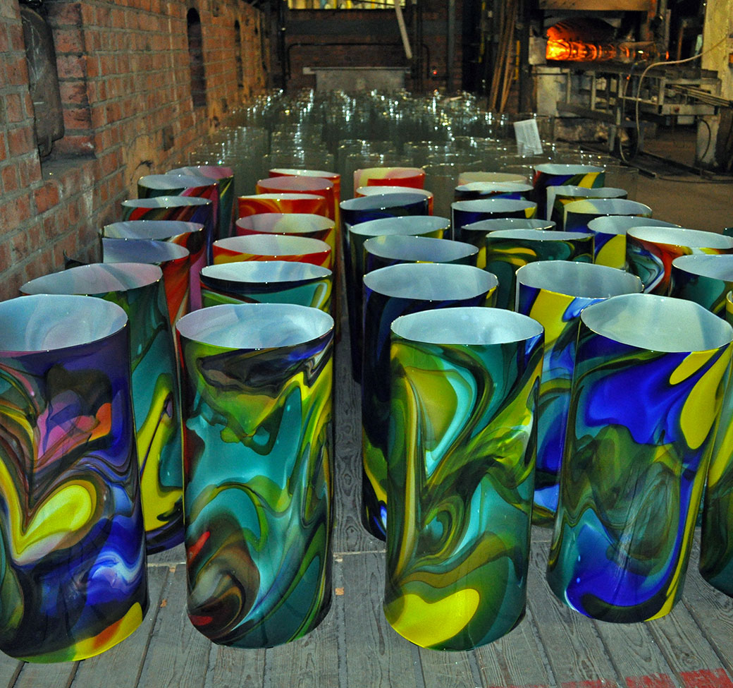 Lamberts Überfang is opgebouwd uit meerdere kleurlagen. Dit glas heeft luchtbelletjes en een rietslag structuur. Überfang glas is zeer geschikt voor bewerkingen als zandstralen en etsen.